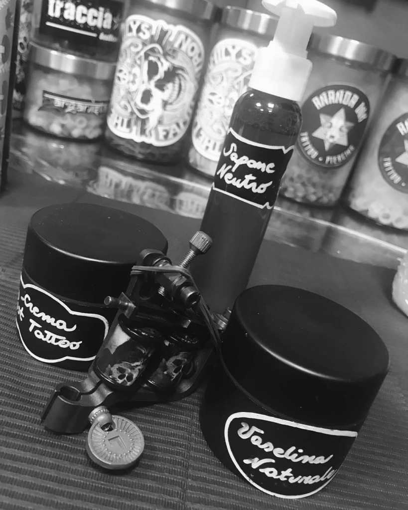 Realizzati con materie prime che contribuiscono alla rigenerazione cellulare. Con Vitamina C e Acido Ialuronico, Olio Essenziale di Camomilla e Lavanda, stimolano la cicatrizzazione e isolano il tatuaggio da germi e batteri.